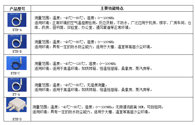 1、測量范圍:溫度:-40℃~120℃,濕度:0~100%RH。多種型號可選。