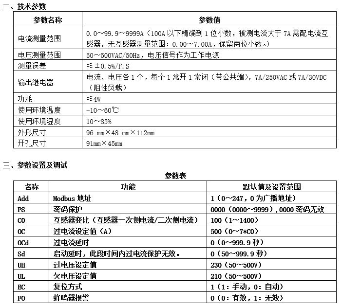 電流采集傳送,過電流、過載保護,ModbusRTU協(xié)議,遠程監(jiān)控
