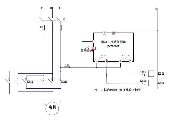 利用我公司兩路循環(huán)定時(shí)器,可以實(shí)現(xiàn)電機(jī)正反轉(zhuǎn)循環(huán)運(yùn)行,正反轉(zhuǎn)運(yùn)行時(shí)間可調(diào),為防止電機(jī)方向切換引起過流,可設(shè)置正反轉(zhuǎn)切換停機(jī)時(shí)間,電機(jī)可無限循環(huán)運(yùn)行或設(shè)置固定循環(huán)次數(shù)運(yùn)行。參考電路如下: