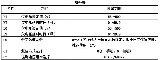 單相數(shù)顯過電壓、欠電壓繼電器典型應(yīng)用如下圖所示,圖中所用型號無需輔助工作電源,電壓測量范圍55~500V(如測量0~500V,需選配置輔助電源的型號),過電壓、欠電壓整定值及動作延時可通過繼電器面板設(shè)定,其輸出繼電器獨(dú)立控制,圖中過電壓、欠電壓觸點(diǎn)串聯(lián)使用,當(dāng)檢測到過電壓、欠電壓或失電時觸點(diǎn)斷開,接觸器線圈失電,斷開負(fù)載電源,從而保證負(fù)載電源的電壓始終在正常范圍內(nèi)。