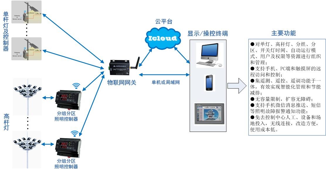 4、照明控制終端分為單桿燈、高桿燈,高桿燈可分組控制;